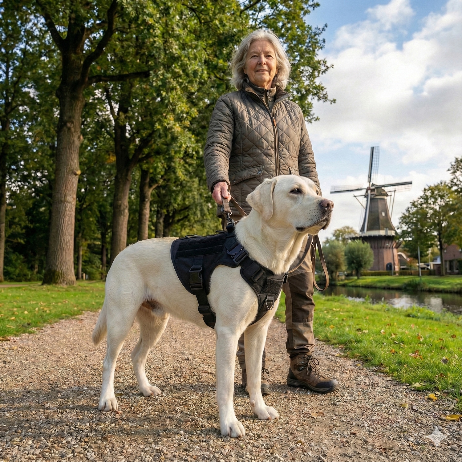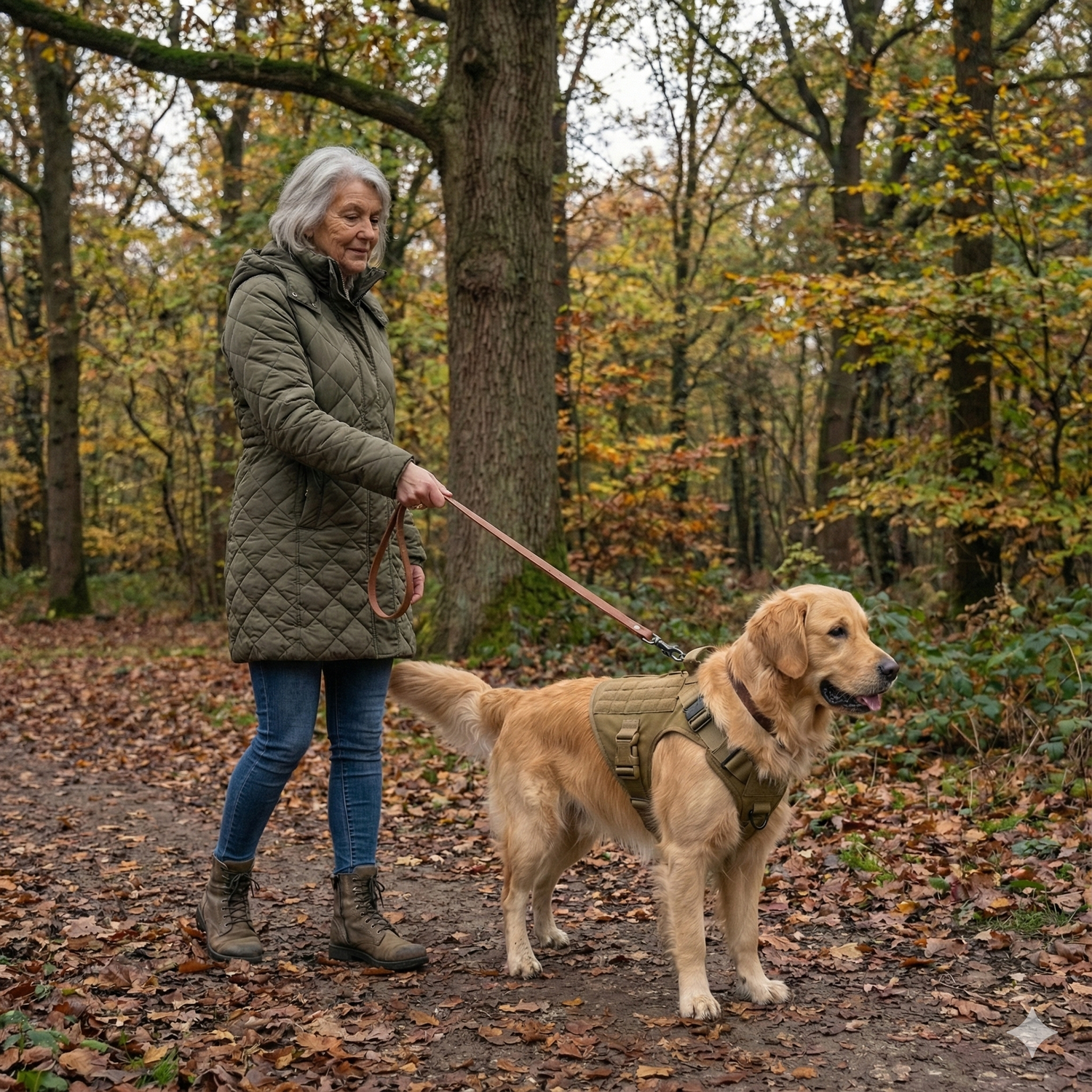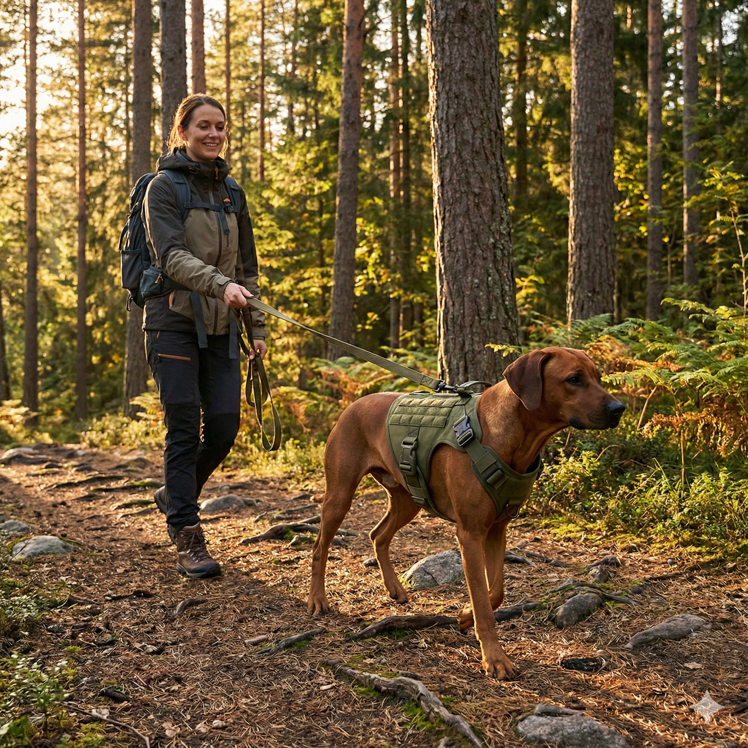 Ik neem Nala vaak mee de bossen in. Met een normaal tuig was ik altijd bang dat ze los zou schieten. Dit harnas voelt anders: ze zit stevig maar beweegt vrij. Voor het eerst durf ik zelfs weer te rennen met haar.