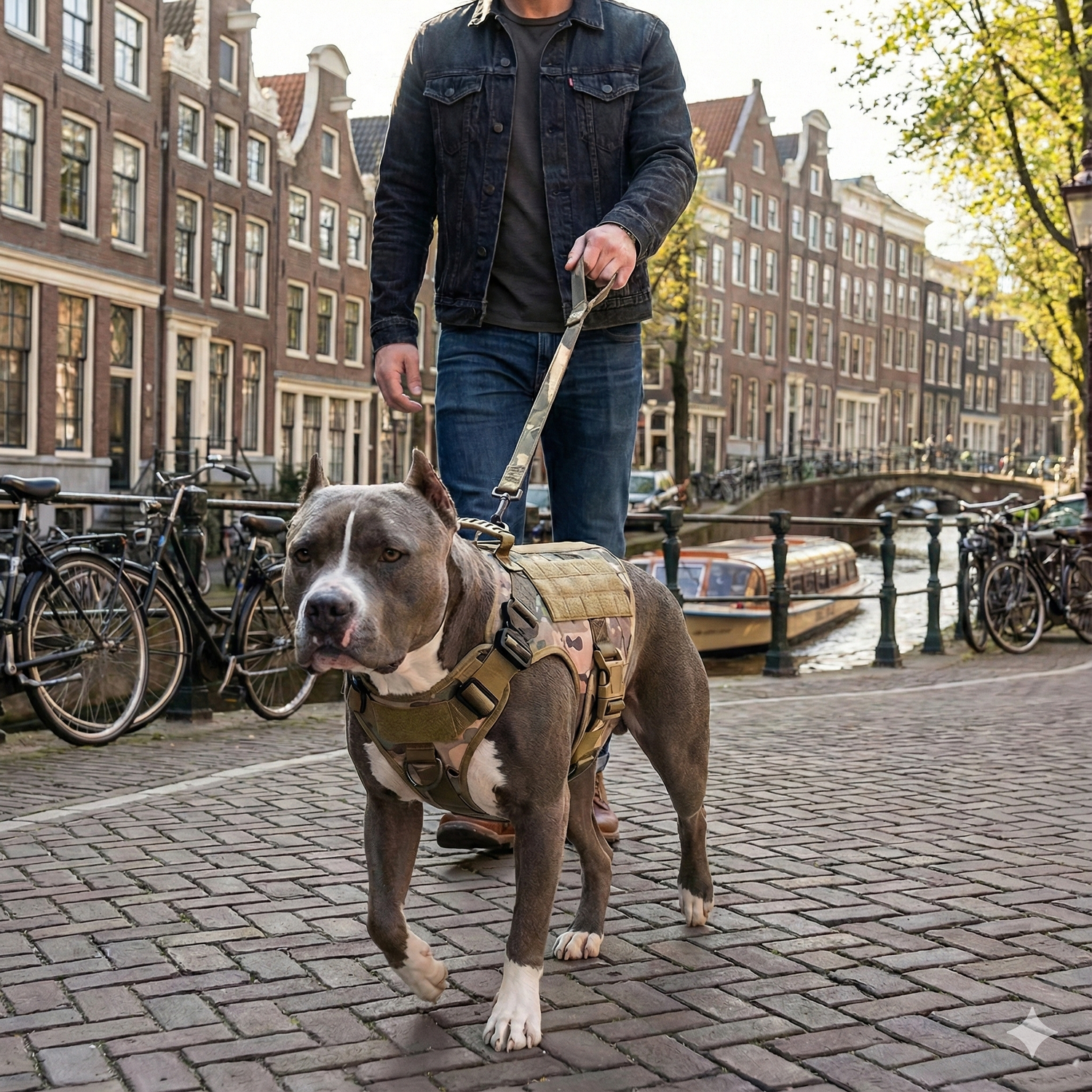 Precies daarvoor is het gemaakt. De dubbele sluitingen en borstverdeling zorgen dat de kracht niet op één punt komt. Zelfs honden van +50kg die volledig uitvallen, worden hiermee onder controle gehouden.